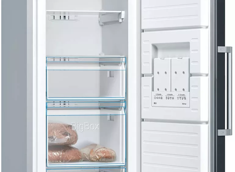Морозильное отделение оснащено системой NoFrost, поддерживает высокую скорость замораживания и автономно сохраняет холод при отключении питания. При уровне шума всего 40 дБ холодильник Bosch KGN86AI32U остается почти незаметным в повседневной жизни. Предусмотрены защита от детей и сигнализация при открытой двери или ошибке, а перенавешиваемые двери упрощают установку в нужной нише.