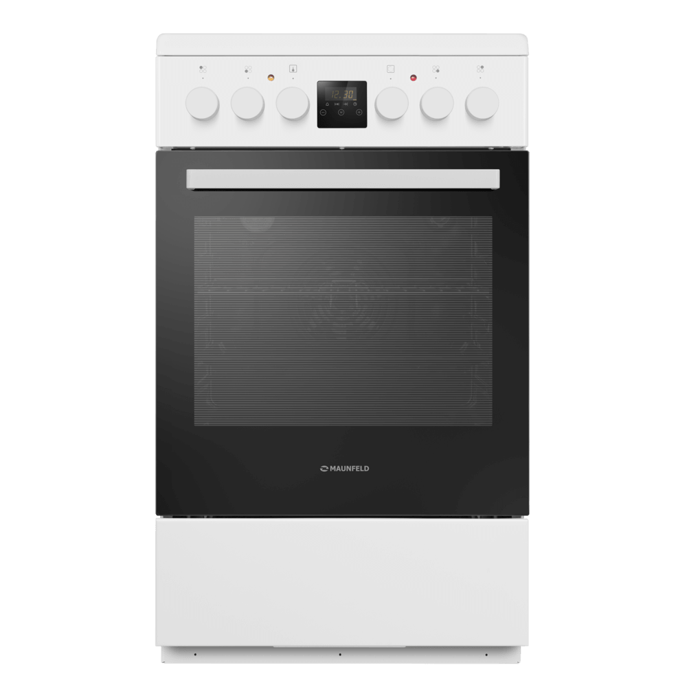 Электрическая стеклокерамическая плита MAUNFELD MEC57CW08TD — удачное решение для тех, кто хочет получить полноценную плиту с духовкой и современную варочную поверхность в одном корпусе. Модель сочетает аккуратный внешний вид в белом цвете и продуманный функционал для ежедневной готовки дома.