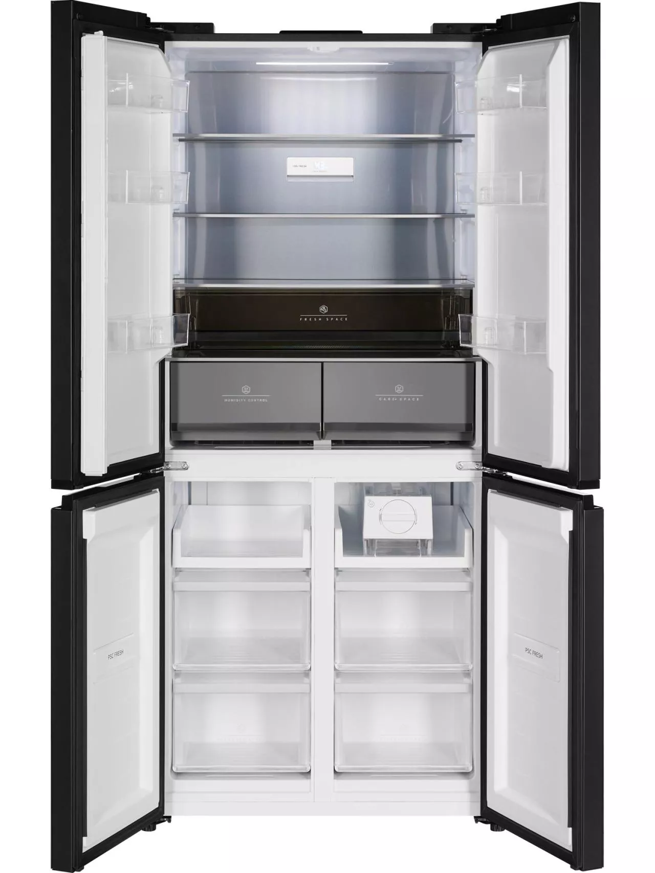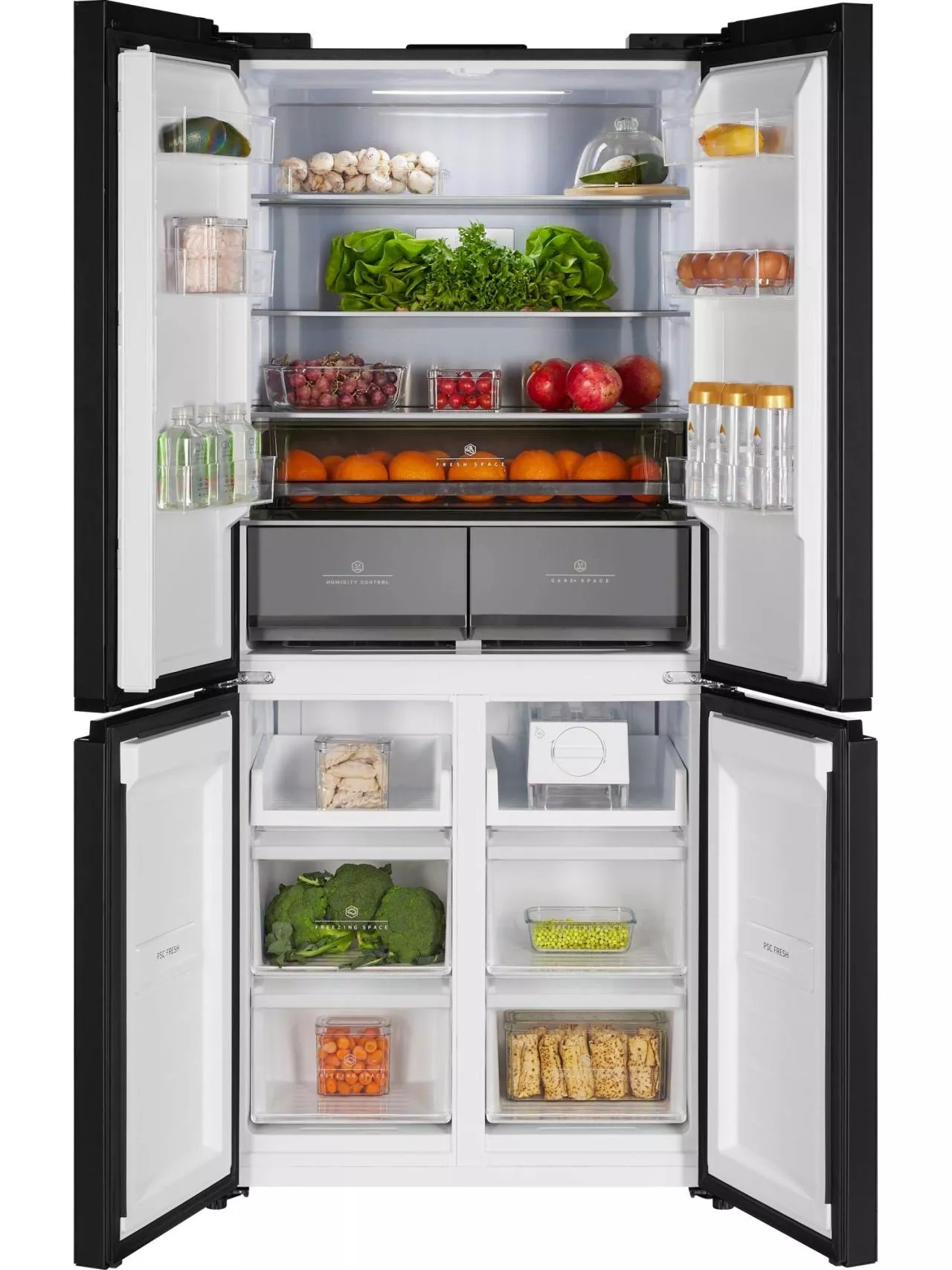 Холодильник HIBERG i-RFQ 630G B – изысканный представитель бренда. Эффектный черный фасад из закаленного стекла станет украшением любого кухонного и столового интерьера.Усовершенствованная конструкция отдельно стоящей модели и глубина 60 см позволят при необходимости гармонично интегрировать холодильник в мебельный гарнитур: достаточно всего 3 мм свободного пространства по бокам. А угол открытия двери в 90 градусов не препятствует полному выдвижению ящиков.
