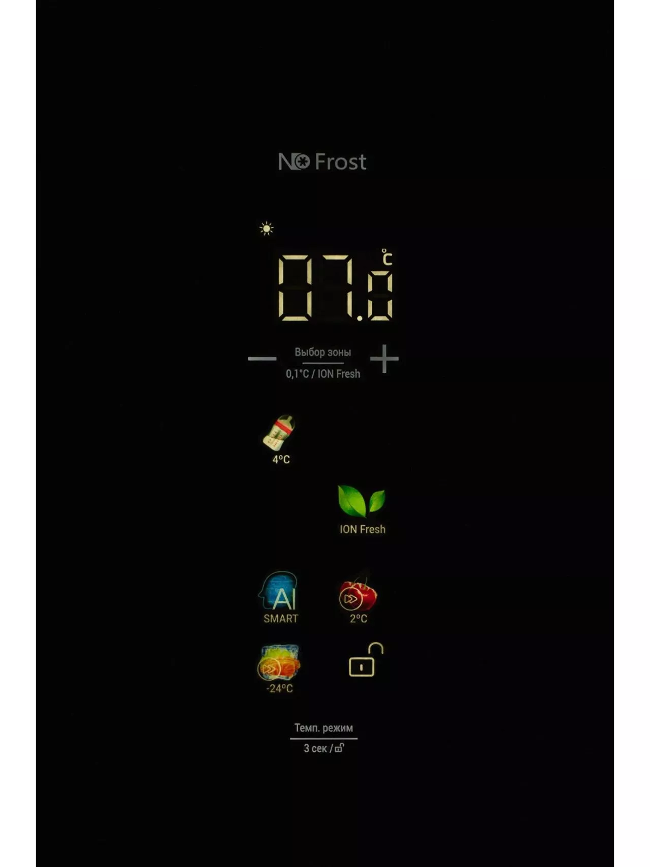 Эргономичные ручки дополняют стильную внешность модели HIBERG i-RFQ 630G B, сохраняя целостность дизайна. Холодильник высотой 190 см и общим объемом 515 л будет лаконично смотреться в пространстве. На двери расположен цветной сенсорный LED-дисплей, с помощью которого можно выбрать нужный режим и отрегулировать параметры температуры, подстроив под личные предпочтения.
