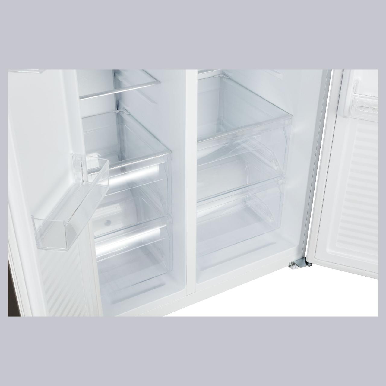 Система NoFrost — конструктивное решение, при котором испаритель внесен в отдельный отсек, где и происходит охлаждение воздуха. Благодаря такой компоновке в морозильном отделении снижается влажность, а значит, лишняя вода не оседает на стенках и не превращается в наледь. Это избавляет Вас от необходимости удалять лёд и иней. В холодильном отделении имеется четыре регулируемые полки из закаленного стекла и три полки из пластика на двери, что поможет настроить пространство устройства под предпочтения пользователя. В морозильном отделении представлено три ящика, а также есть емкость для льда.