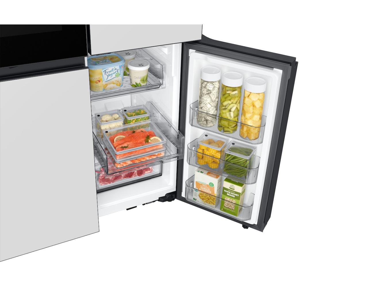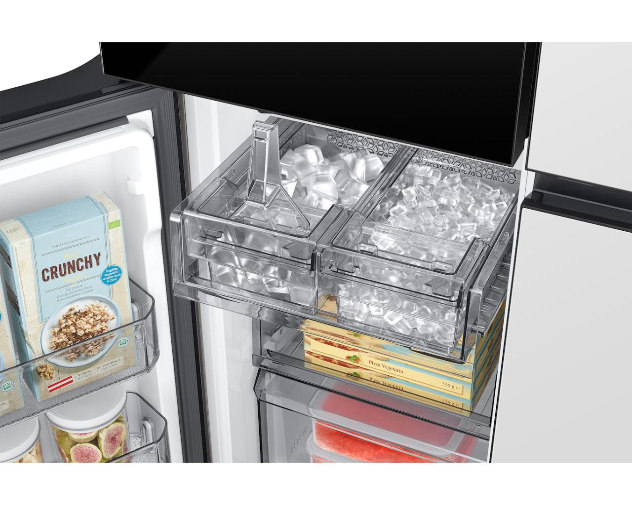 Холодильник Samsung RF9000DC — это вместительное и технологичное решение для большой семьи, выполненное в формате French Door (четыре двери). Общий объем 676 литров, разделенный на три независимые камеры, позволяет организовать хранение продуктов с максимальным комфортом. Модель оснащена инверторным компрессором, полной системой No Frost в обеих камерах, встроенным ледогенератором и интеллектуальным управлением через Wi-Fi. Стильный белый корпус со стеклянными дверями и внутренними ручками гармонично впишется в современный интерьер просторной кухни.