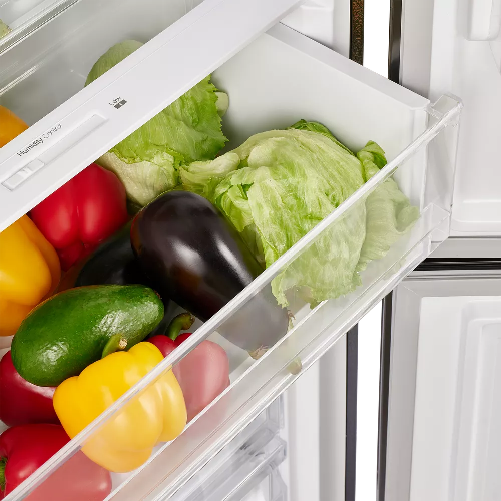 За равномерное распределение холода отвечает динамическое охлаждение: специальный вентилятор поддерживает оптимальные условия на каждой полке и в любом отделении. Внутреннее пространство продумано для гибкой настройки — высота полок и отсеков регулируется, полки выполнены из закаленного стекла, а комплектация включает подставку для яиц и форму для льда.