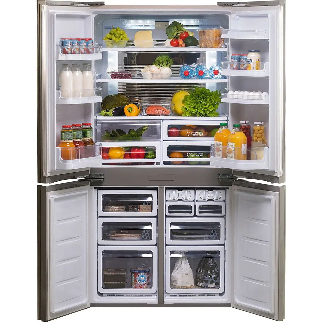 Модель впечатляет вместительностью: полезный объём 605 л рассчитан на крупные семейные закупки и удобную организацию пространства. Отсутствие центральной перегородки в холодильной камере и широкие стеклянные полки делают размещение продуктов максимально удобным.
