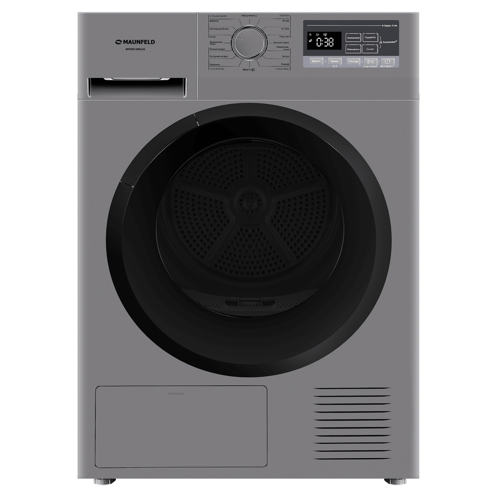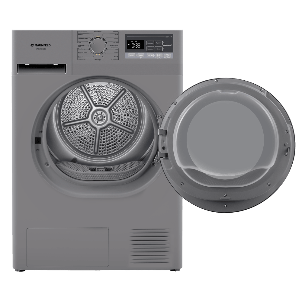 Сушильная машина с тепловым насосом бережно сушит бельё, экономит электроэнергию и оснащена датчиком влажности, антисмятием, функцией «Мой режим» и подсветкой барабана. Вместительный барабан рассчитан на 8 кг загрузки.