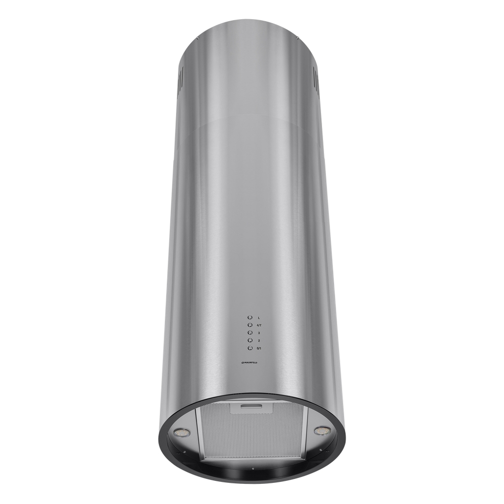 Кухонная вытяжка MAUNFELD Lee Isla 39 нержавеющая сталь — выбор для тех, кто ценит дизайн и функциональность. Цилиндрический корпус из нержавеющей стали с термостойким покрытием крепится к потолку прямо над плитой и органично вписывается в современный интерьер. В нижней части расположен многослойный алюминиевый фильтр, который легко снимается и разбирается для быстрой очистки.