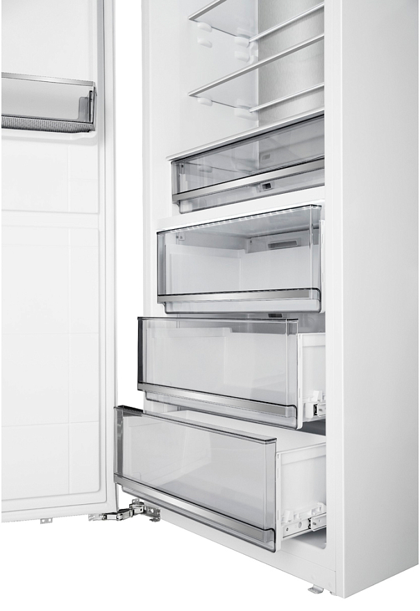 Прибор оснащен системой No Frost, которая предотвращает образование инея в морозильном отделении. Это значит, что вам не придется тратить время на его размораживание. Автоматическая система размораживания обеспечивает надежное и эффективное функционирование морозильника. Инверторный компрессор обеспечивает тихую и стабильную работу.