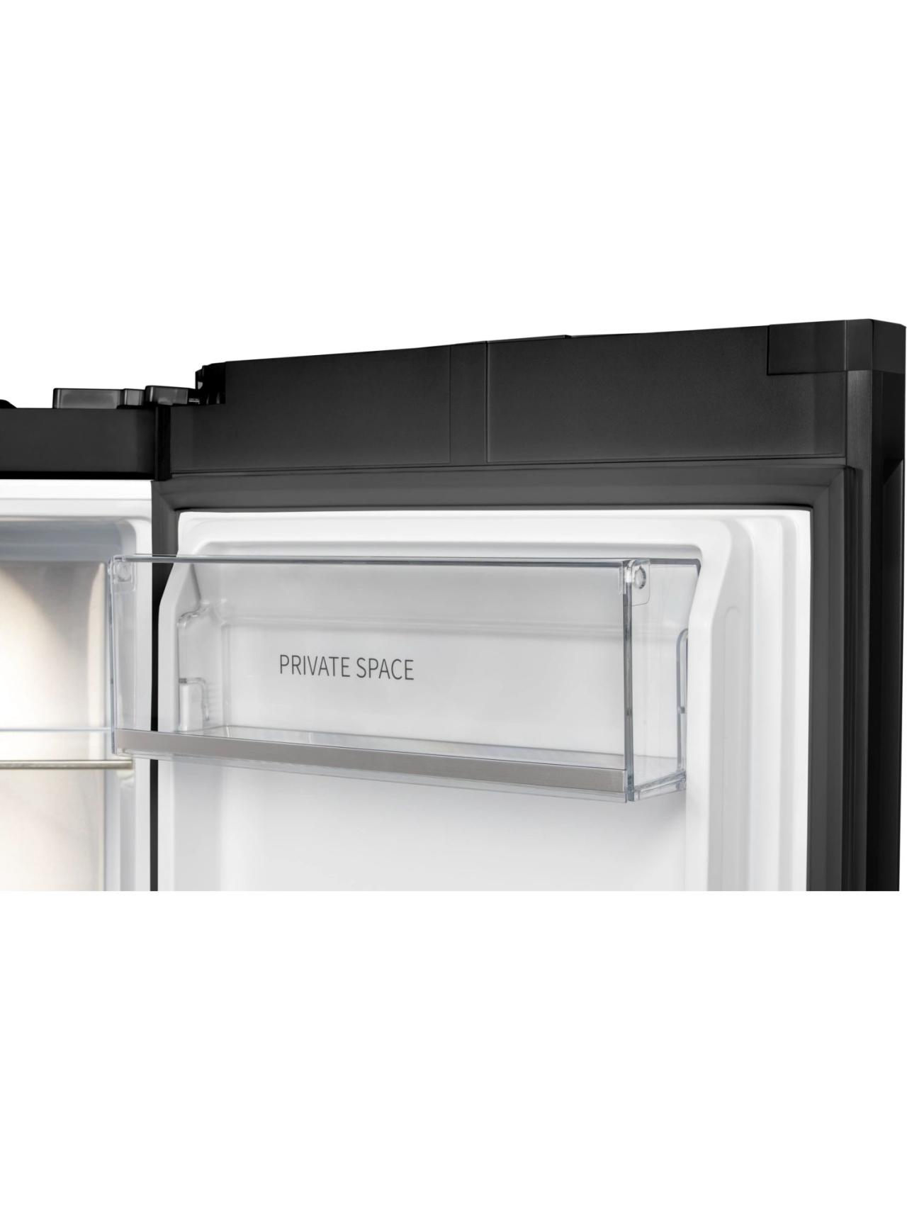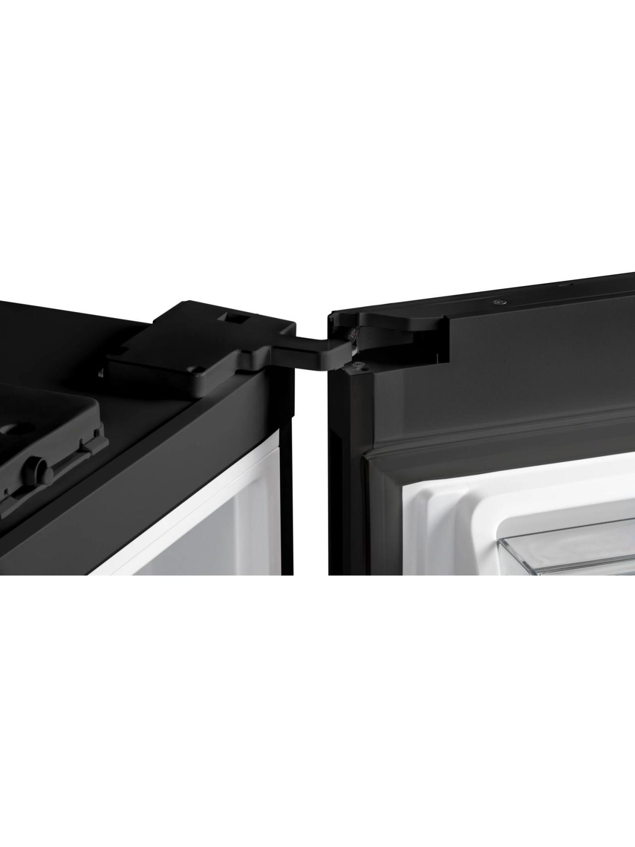 Дверь морозильника имеет уникальный дизайн, выполнена из закаленного чёрного стекла. Дверь можно перенавесить с правой стороны на левую. Для легкого открывания в модели предусмотрена функция автооткрытия стуком — необходимо постучать по верхней части поверхности более двух раз, и дверь морозильника приоткроется.