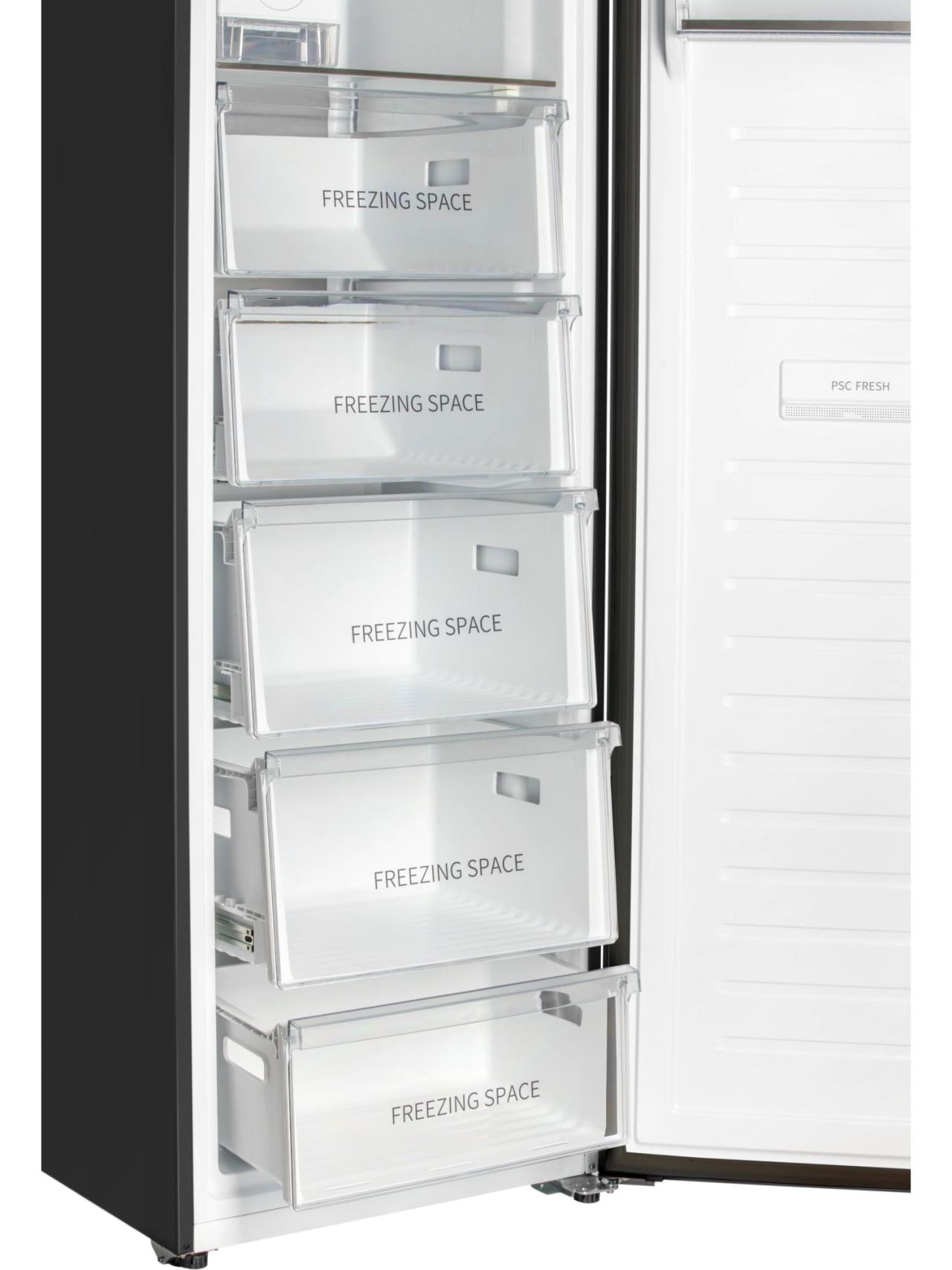 Функция FRESH SPACE реализуется за счёт того, что на внутренней стороне двери морозильника находится блок PSC FRESH, обогащённый свободными ионами наносеребра. Он уничтожает вредные бактерии, помогает устранять запахи и надолго сохранять свежесть продуктов.