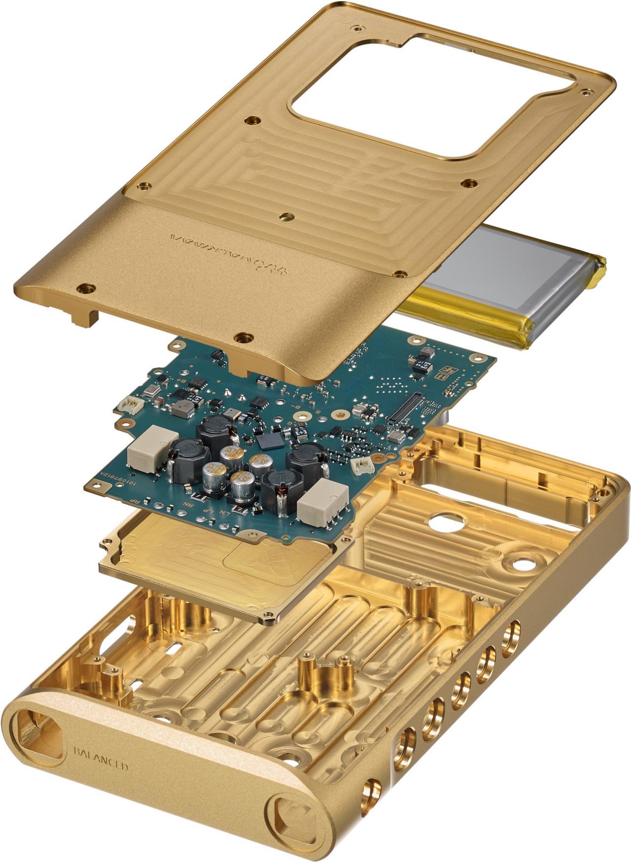 Исключительное качество звука требует исключительных компонентов. NW-WM1ZM2 изготовлен из бескислородной меди (OFC), которая имеет 99,99% (4N) золотого покрытия. Благодаря этому рама прочная и хорошо заземлена. Высококачественные компоненты и сборка обеспечивают впечатляющее и детальное воспроизведение звука. Переход усилителя от несимметричного выхода к сбалансированному выходу для наушников через кабель KIMBER помогает поглощать внешний звук, передавать высококачественные аудиосигналы и достигать мощного и плавного звучания.