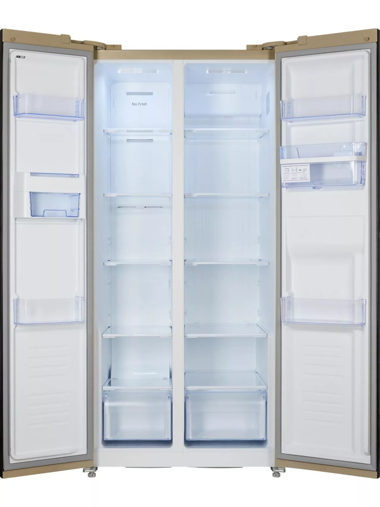 Особенность модели – наличие диспенсера для воды на фасаде двери объемом 2 литра. Такая конструкция позволяет наливать охлажденную воду, не открывая холодильник. Встроенный ледогенератор внутри морозильной камеры позволит освежиться напитками с кубиками льда.