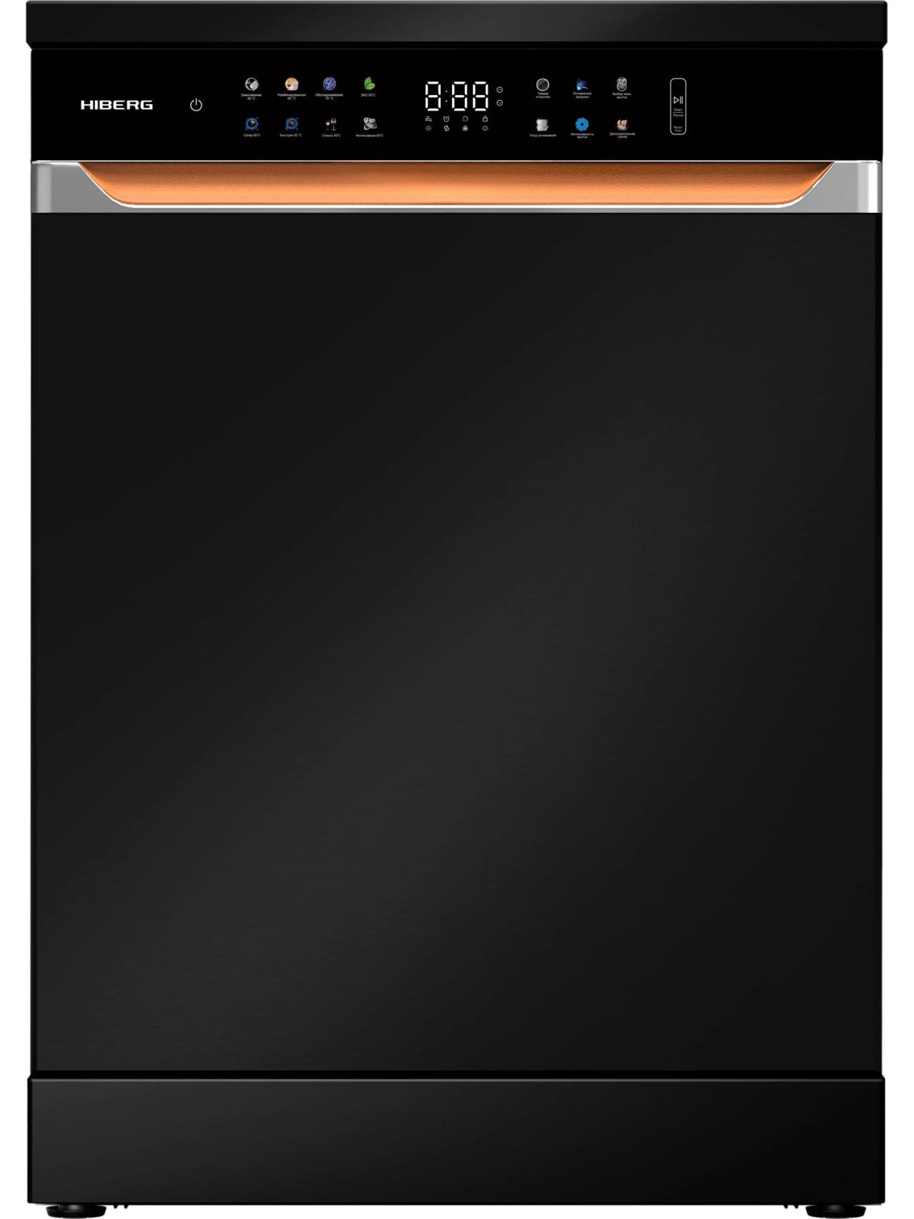 Для комфорта предусмотрены выбор зоны мытья (в одной корзине), таймер отсрочки, цветная сенсорная панель с большим дисплеем. Премиальный дизайн подчеркнут стильными кожаными вставками и единой стилистикой со стиральной машиной HIBERG I-DDQ10-814 B. За безопасность отвечают полная защита от протечек AquaStop и блокировка от детей. Гарантия — 2 года.