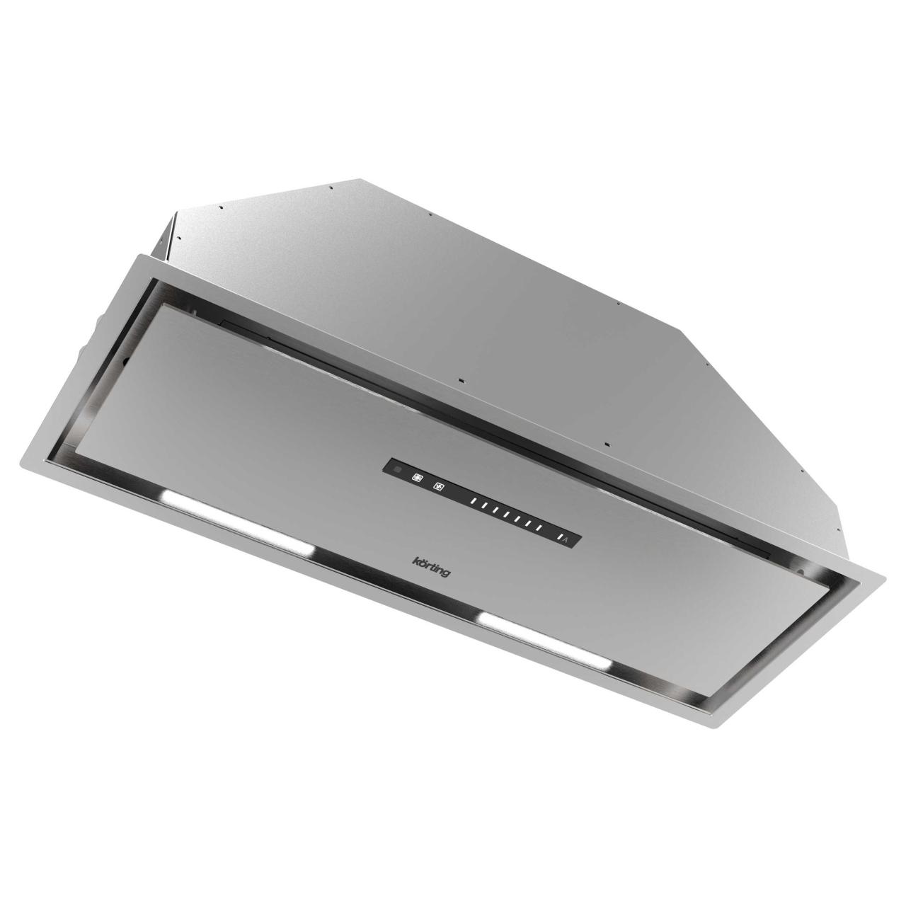 Для установки полностью встраиваемой вытяжки в корпусе навесного шкафчика необходимо сделать вырез, а после размещения в нише, прибор необходимо закрепить. Такая особенность встраивания требует уменьшенной ширины вытяжки относительно ширины шкафчика. Габариты встраиваемых вытяжек KÖRTING оптимально выверены для установки в соответствующих модулях.