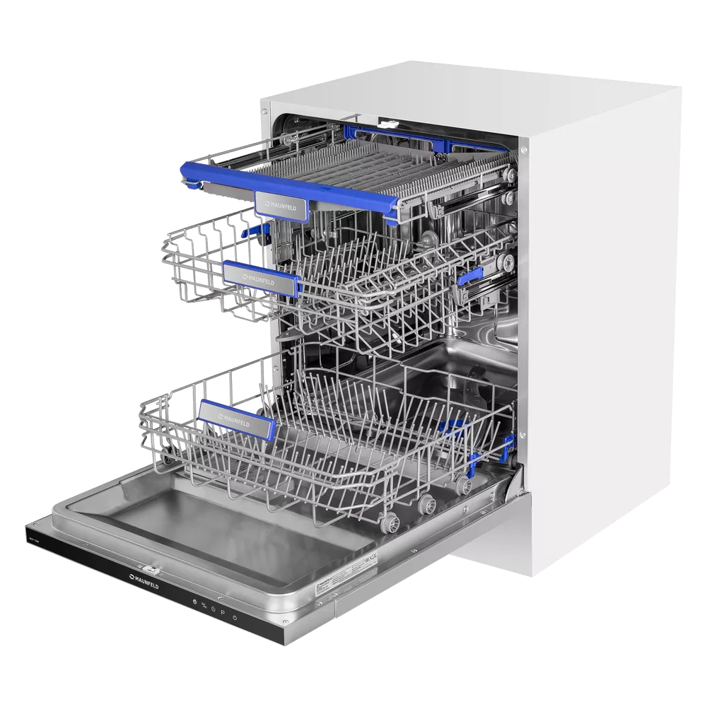 Полноразмерная встраиваемая посудомоечная машина MAUNFELD MLP-12IM сочетает в себе современный дизайн и высокую функциональность. Она оснащена специально разработанными корзинами и дополнительным выдвижным лотком для столовых приборов, что позволяет вымыть до 14 комплектов посуды за один цикл. Внутренняя поверхность из нержавеющей стали толщиной 0.6–0.8 мм гарантирует долговечность и надежность даже при активной эксплуатации.