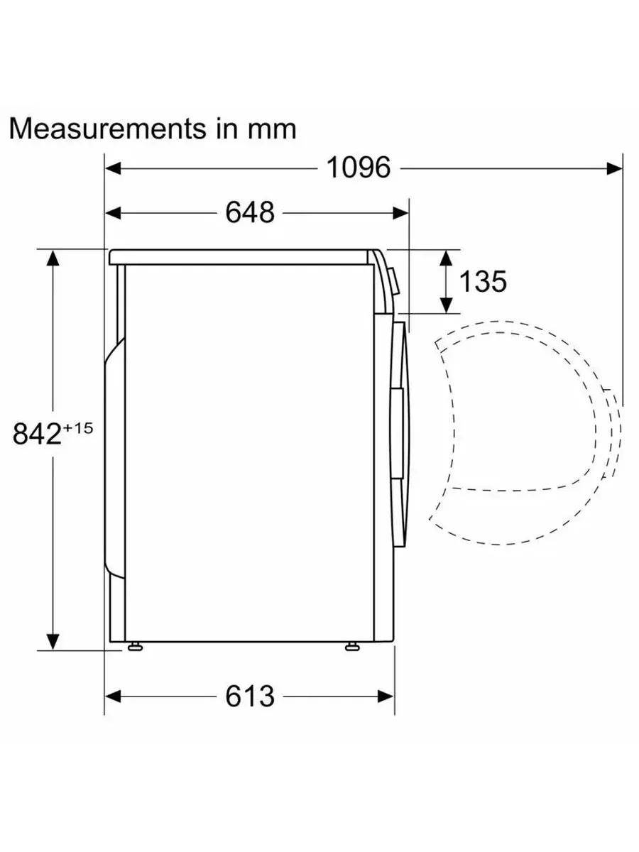 • Размеры устройства (ШxВxГ): 59.8 × 84.2 × 61.3 см. Стандартные габариты обеспечивают легкую интеграцию под столешницу или установку в линию со стиральной машиной.