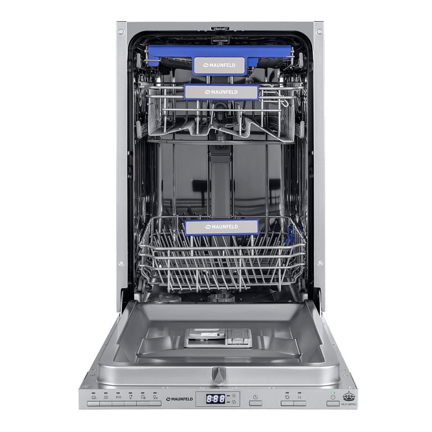 Узкая встраиваемая посудомоечная машина шириной 45 см. Благодаря использованию специально разработанных корзин и дополнительного выдвижного лотка для столовых приборов позволяет вымыть 10 комплектов посуды. Внутренняя поверхность выполнена из нержавеющей стали толщиной 0.6-0.8 мм, что обеспечит долгий срок службы при активном использовании.