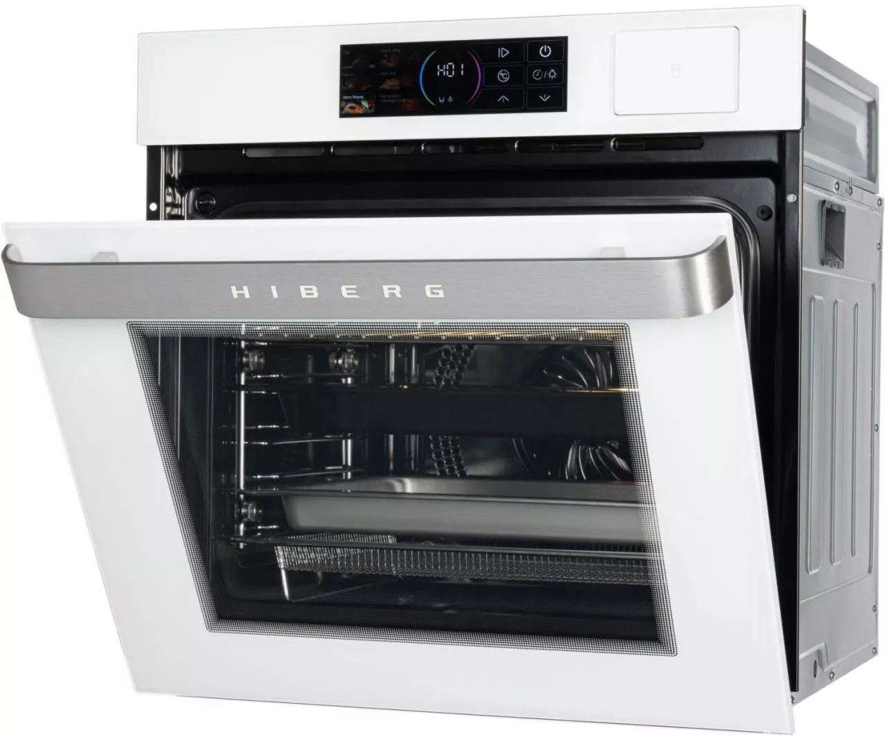 Встраиваемый электрический духовой шкаф HIBERG S-VM 6415 W SMART создан для тех, кто ценит удобство и стиль на кухне. Белый стеклянный фасад и цветной LED-дисплей с сенсорным управлением помогают быстро задать нужные параметры и контролировать процесс приготовления, не перегружая пространство визуально.