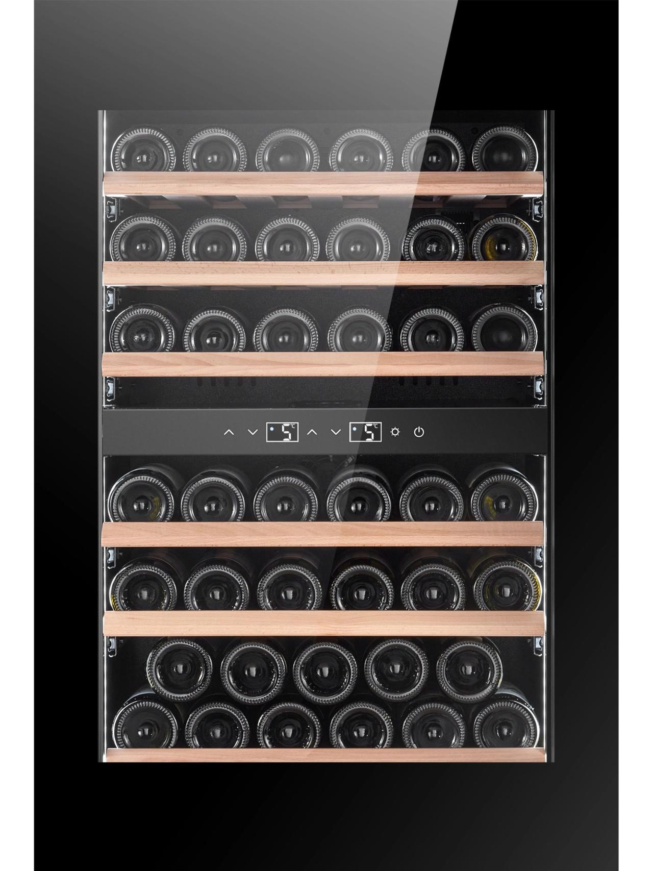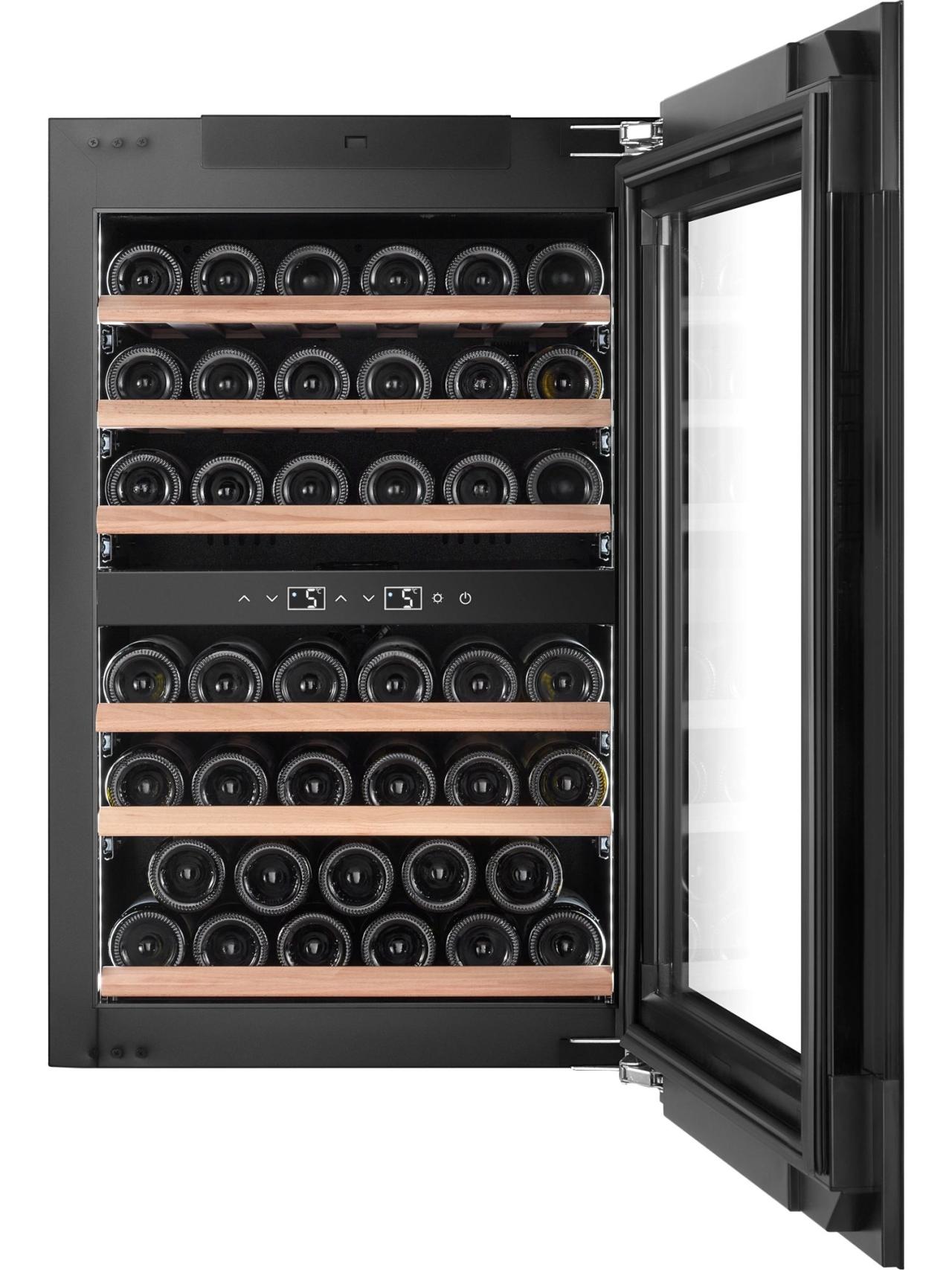 Встраиваемый винный шкаф HIBERG ROYAL W 85 создан для тех, кто ценит эстетику и правильные условия хранения. Лаконичный черный корпус с затемнённым стеклом Low-E гармонично вписывается в интерьер квартиры, загородного дома или небольшого ресторана, а перенавешиваемая дверца помогает подстроиться под планировку помещения. При этом двухзонная конструкция позволяет держать разные сорта вина в одном шкафу — без компромиссов по вкусу и аромату.